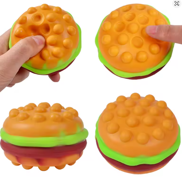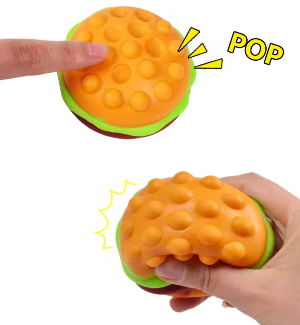 Esta popular Bola de hamburguesa fidget combina el diseño del juguete de juego fidget push de burbuja más popular y la presión se puede liberar con un ligero pellizco.