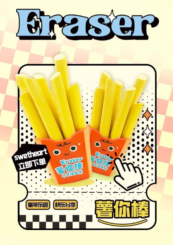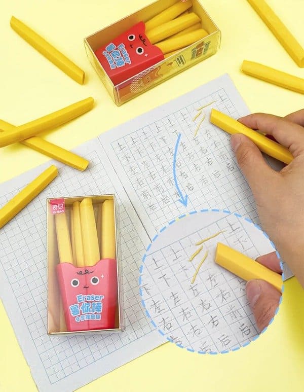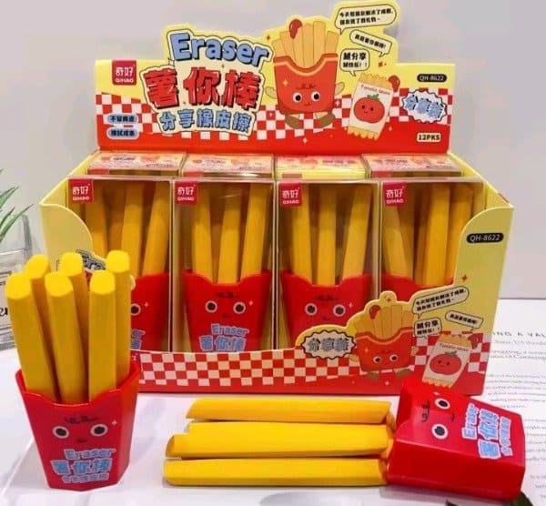 Gomas de borrar de Papas Fritas con cajita de plástico