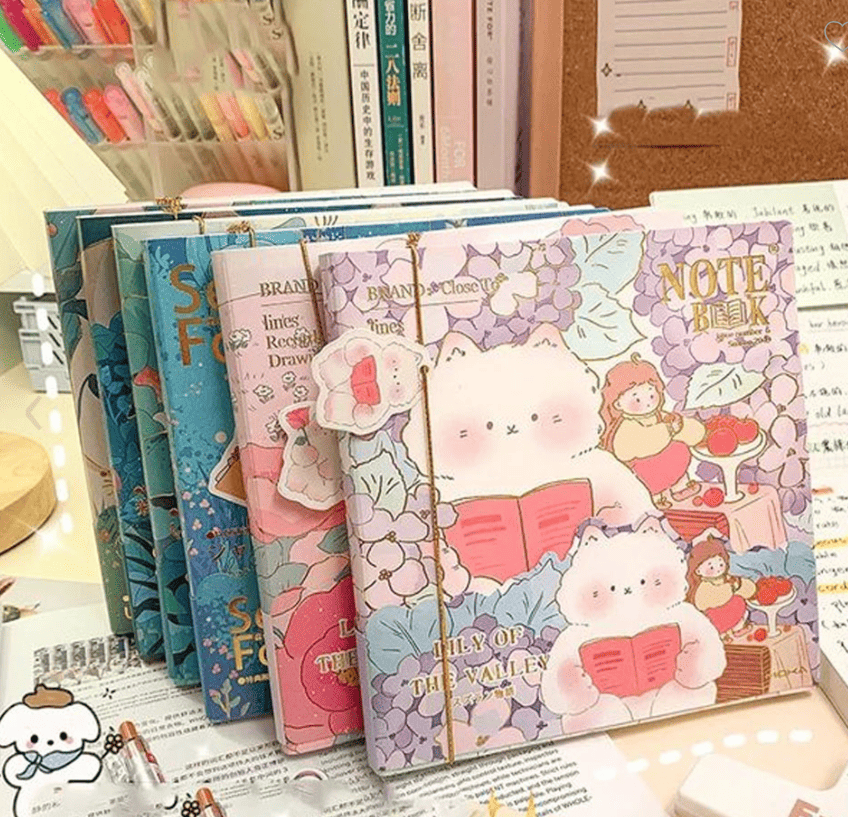 Cuaderno cuadriculado con diseños de tapa Kawaii. Variedad de diseños en las tapas.